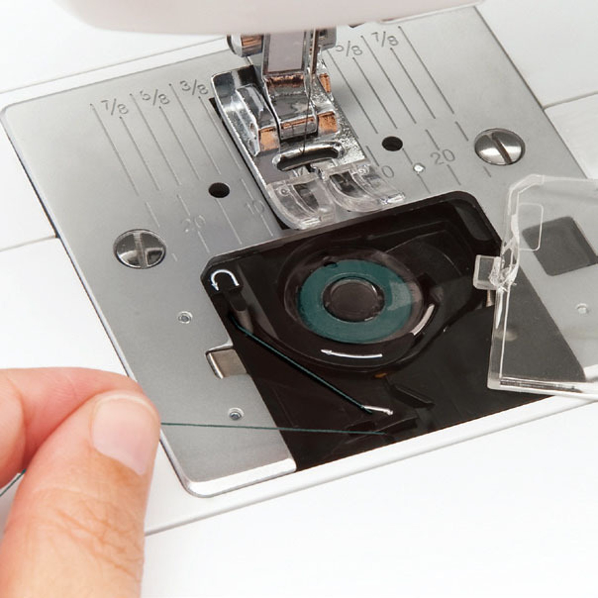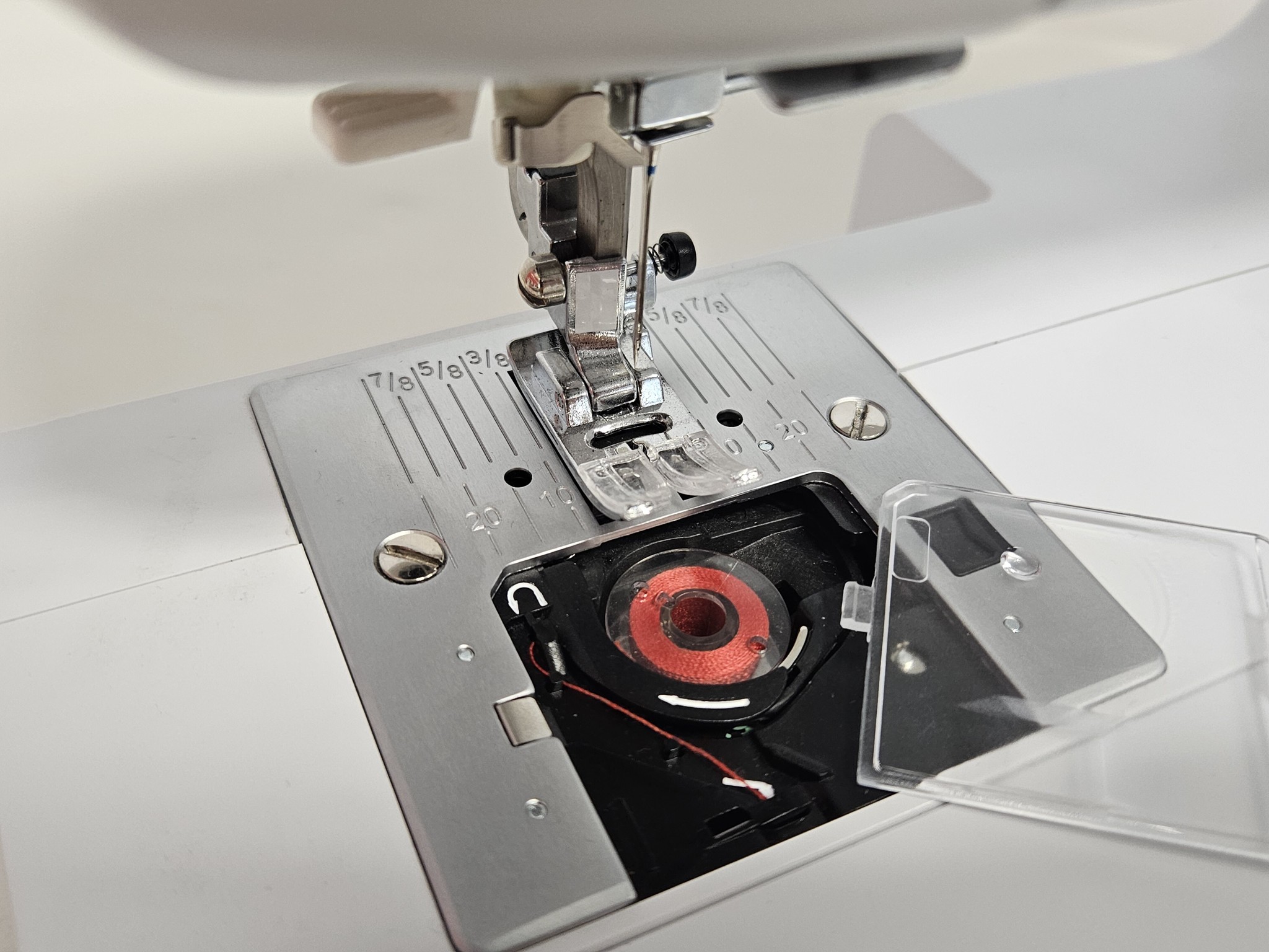 Dobře navlečený stroj je zárukou skvělých výsledků. Cívka spodní nitě se do stroje snadno vkládá shora a pak již jen sledujete šipky pro správnou orientaci.Výměna cívky s nití je záležitostí okamžiku. Podavač stroje lze spustit a usnadnit si tak práci při prošívání nebo quiltingu. VERITAS Rubina je tak vskutku ideální stroj pro šití všech typů látek včetně žerzeje.